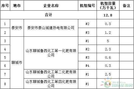近日山東省發(fā) 改委公布了《山東省2017年電力行業(yè)淘汰落后產(chǎn)能企業(yè)名單(第二批)公示》,涉及4個(gè)企業(yè)8臺(tái)機(jī)組,共計(jì)12.8萬千瓦。具體情況如下: