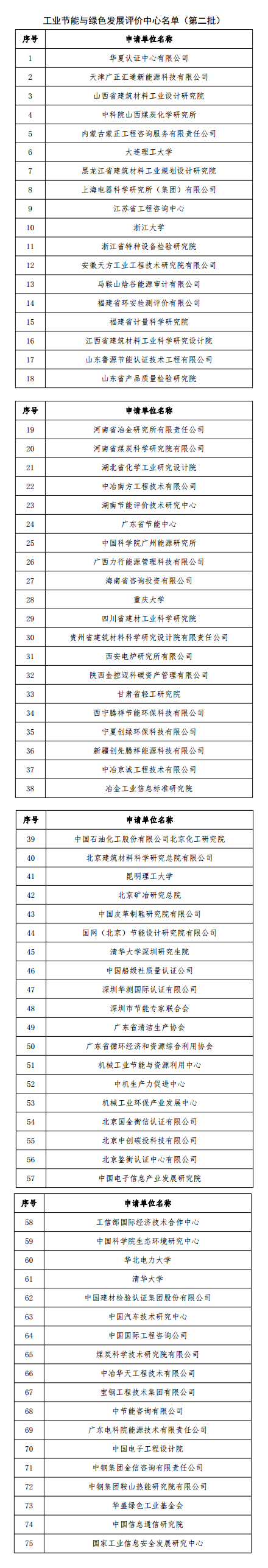 為貫徹落實《中國制造2025》《工業綠色發展規劃(2016-2020年)》《綠色制造工程實施指南(2016-2020年)》,增強綠色服務能力,推動工業節能與綠色發展,工業和信息化部組織開展了工業節能與綠色發展評價中心(以下簡稱評價中心)推薦工作。按照《工業和信息化部辦公廳關于組織申報第二批工業節能與綠色發展評價中心的通知》(工信廳節函〔2017〕471號)要求,經各方推薦、專家評審和社會公示,確定了第二批評價中心名單(見附件),現予公布。