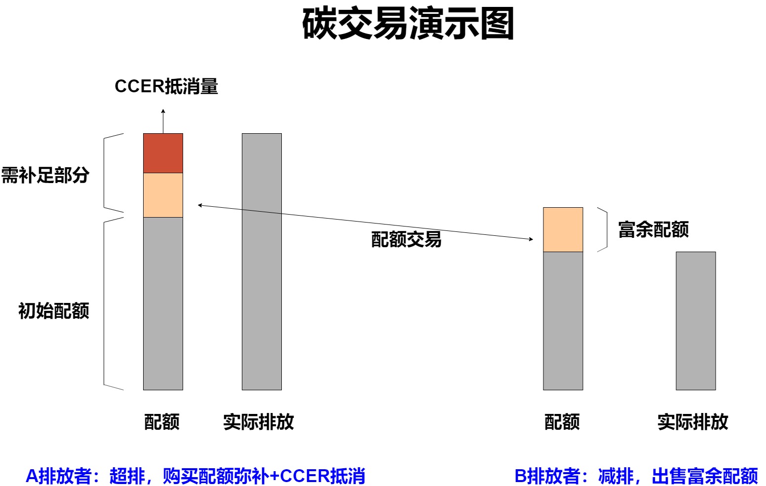 碳交易是碳中和政策下的特殊產物。為了實現碳減排,以后企業都會實施碳排放配額制,這樣就會產生碳排放的供需錯配,而供需錯配就會衍生出碳交易。而碳交易自然衍生出碳交易市場和碳交易所。