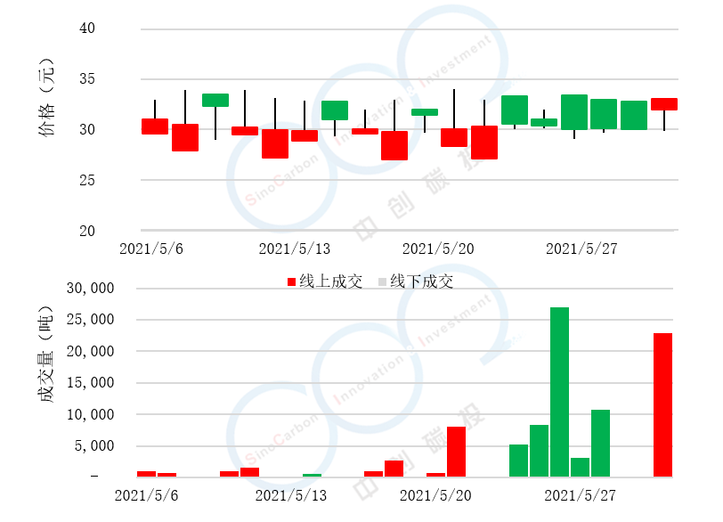 • 線上成交價最低為27.00元,最高為29.80元,平均碳價為29.00元。