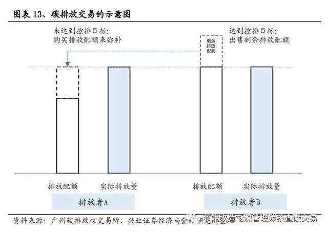 碳交易市場是由政府通過對(duì)能耗企業(yè)的控制排放而人為制造的市場。通常情況下,政府確定一個(gè)碳排放總額,并根據(jù)一定規(guī)則將碳排放配額分配至企業(yè)。如果未來企業(yè)排放高于配額,需要到市場上購買配額。與此同時(shí),部分企業(yè)通過采用節(jié)能減排技術(shù),最終碳排放低于其獲得的配額,則可以通過碳交易市場出售多余配額。雙方一般通過碳排放交易所進(jìn)行交易。