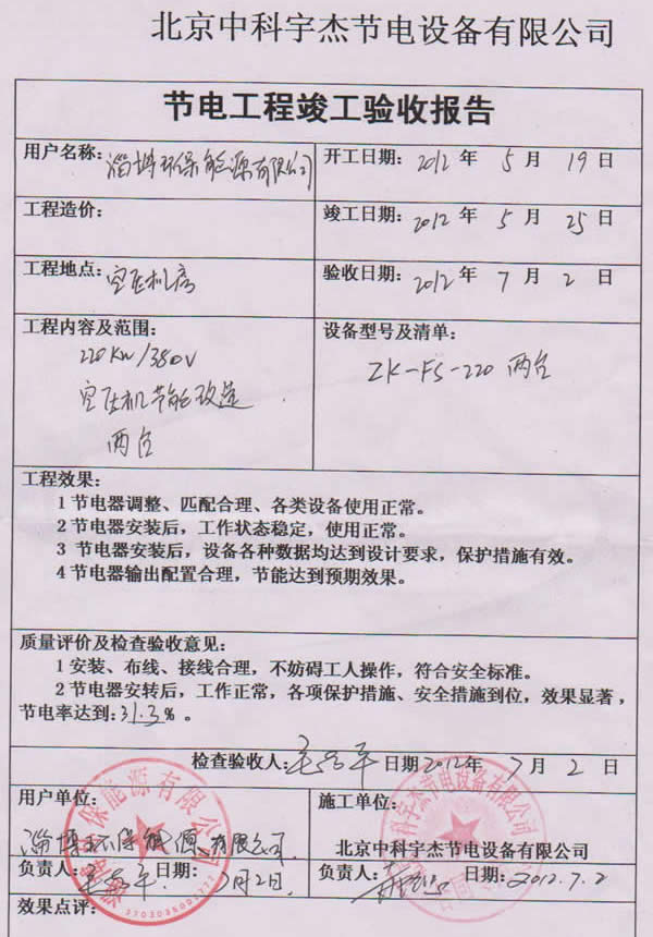 淄博環保能源空壓機節能改造項目